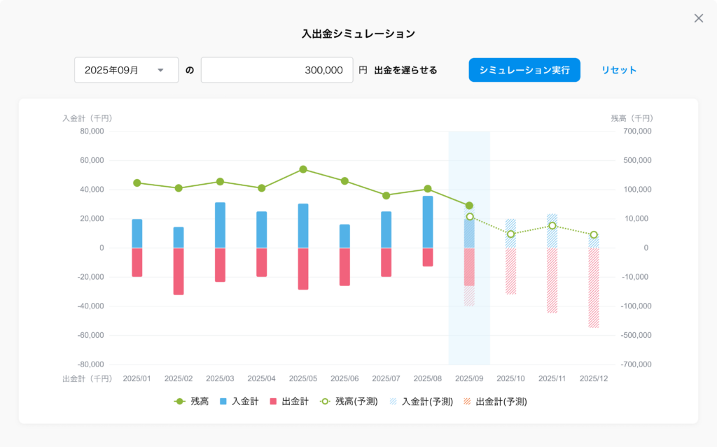 ▲入出金シミュレーションの画面。(画像1)