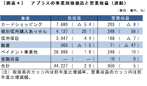 ショッピングクレジット市場においては他の信販会社が金利引上げ等を行った反動で取扱高を減少させているところ、アプラスも同様に収益構造改革に取り組む一方、これまで金利競争から距離を置いてきたことから順調にシェアを伸ばすことができた。