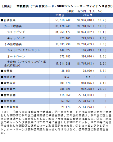 SMBCCFの完全子会社化は10月だが、下期の業績だけでなく、24年度通期の業績を合算している。23年度の業績は24年度と同じ計上基準を遡及適用して再計算した数値であり、昨年掲載したものとは異なる。